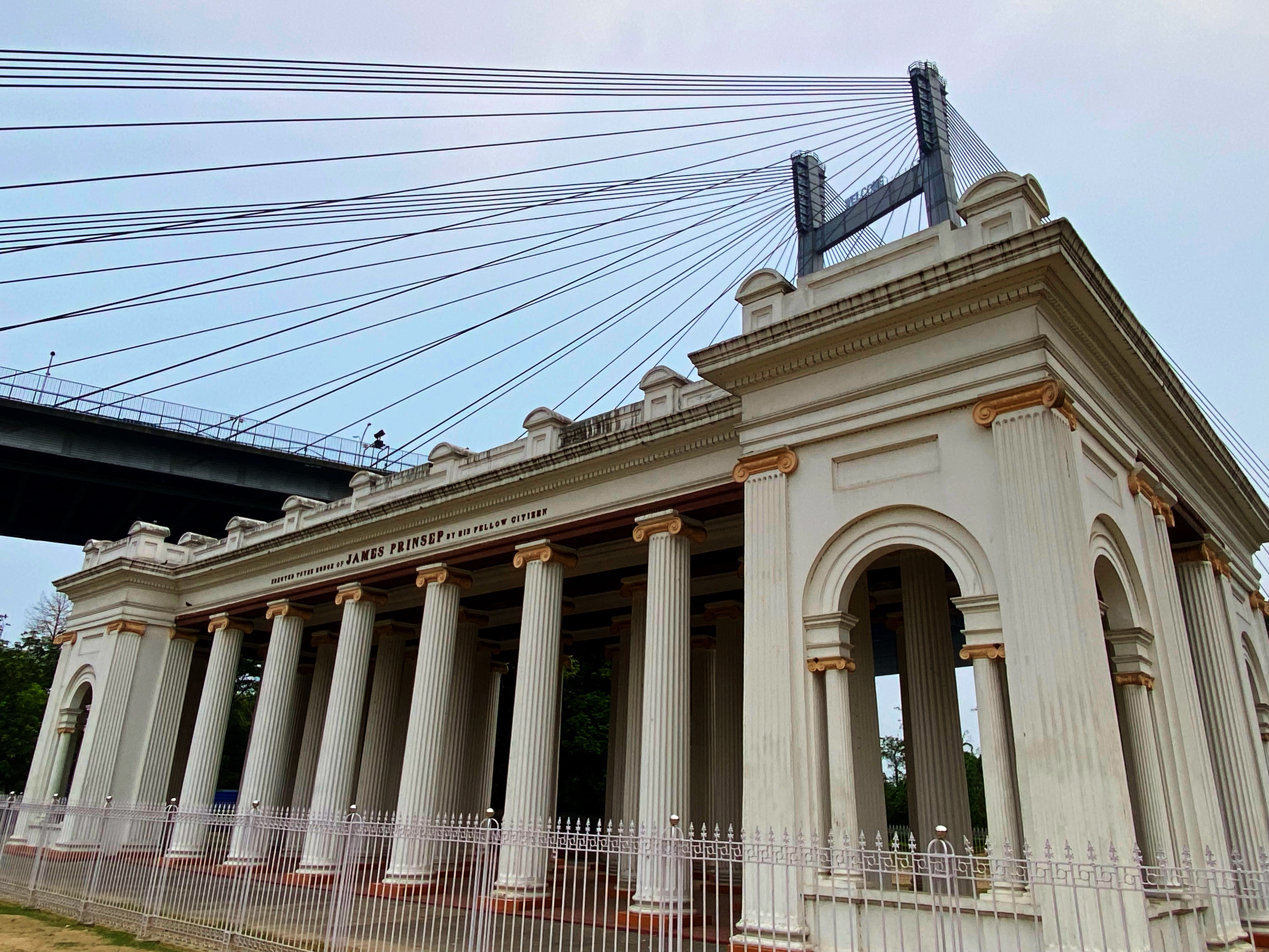 Built in 1841 in honor of James Princip, the impressive Palladian Porch building stands on the banks of the Hooghly River. Prinsep Ghat is a popular tourist attraction in Calcutta, known for its beautiful views of the river, royal architecture, and sunsets.