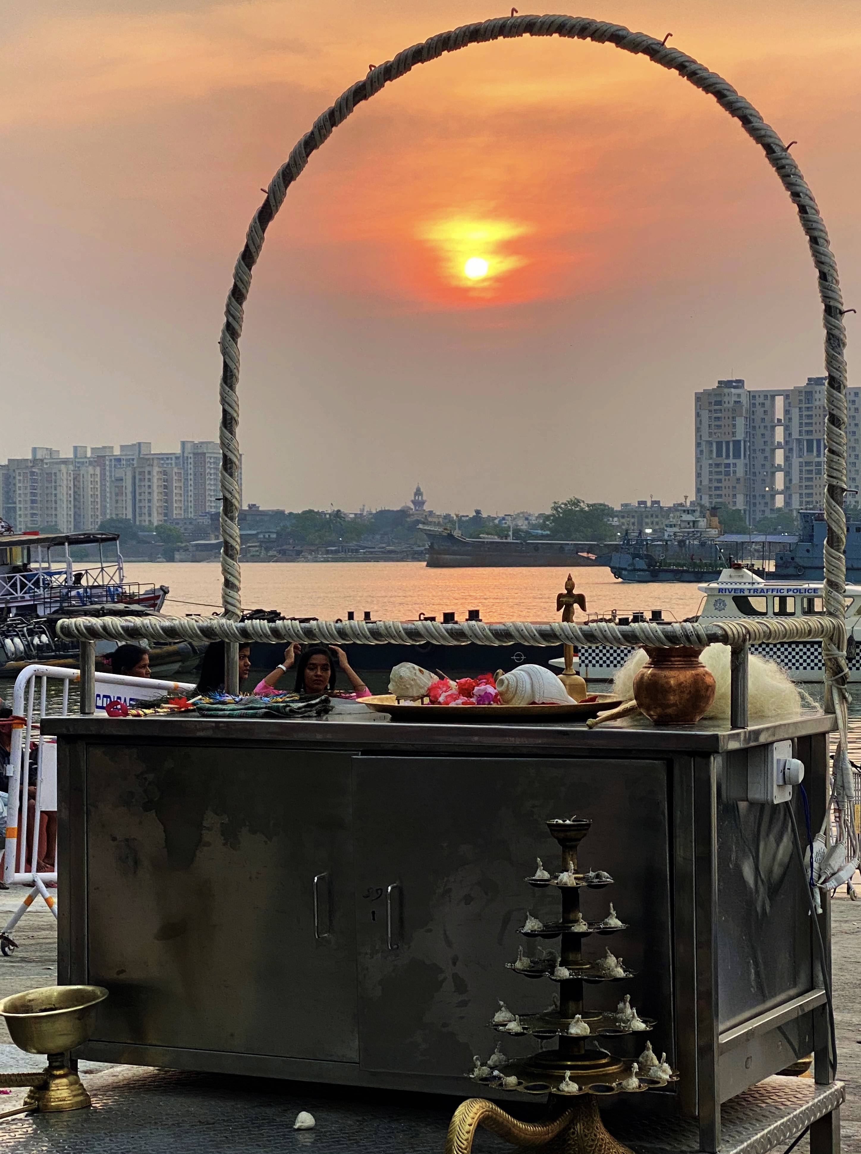 The Aarti offers a serene and peaceful environment as the lamps are lit, hymns are chanted, and the sunset over the river adds to the tranquil atmosphere, creating a profound and uplifting experience. It also serves as a reminder of the eternal connection between the city and the river, highlighting the integral role of the Hooghly in the lives of the residents.