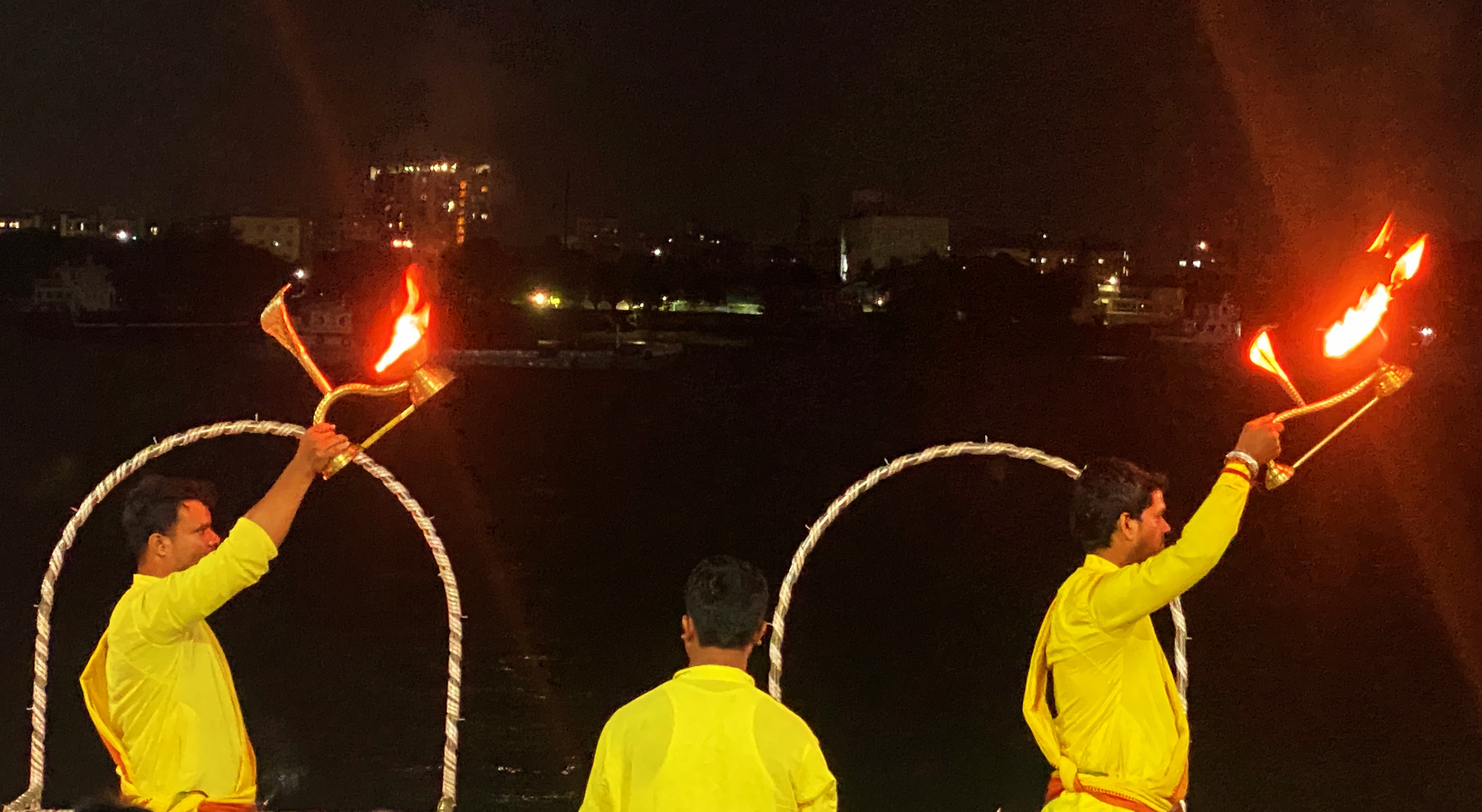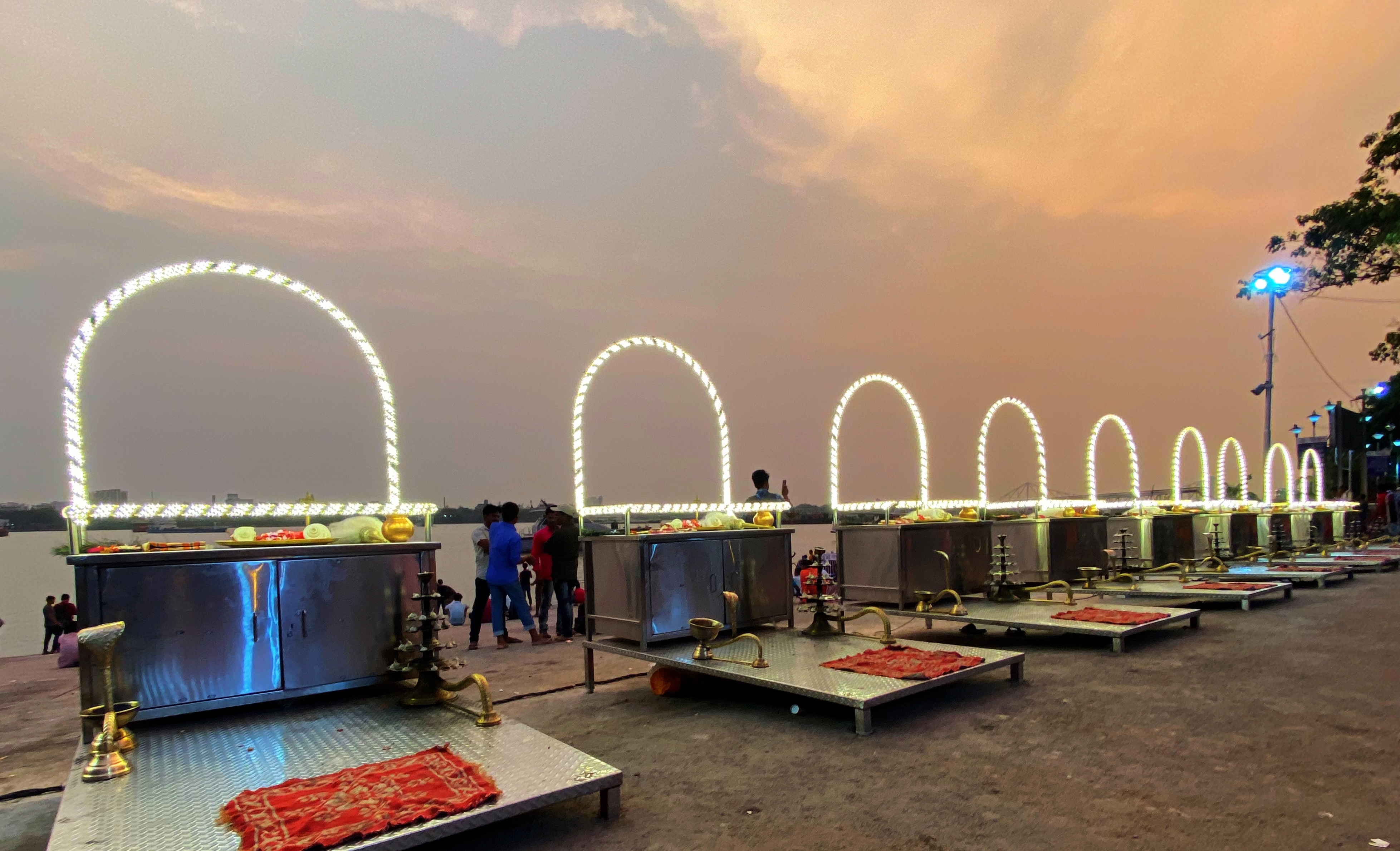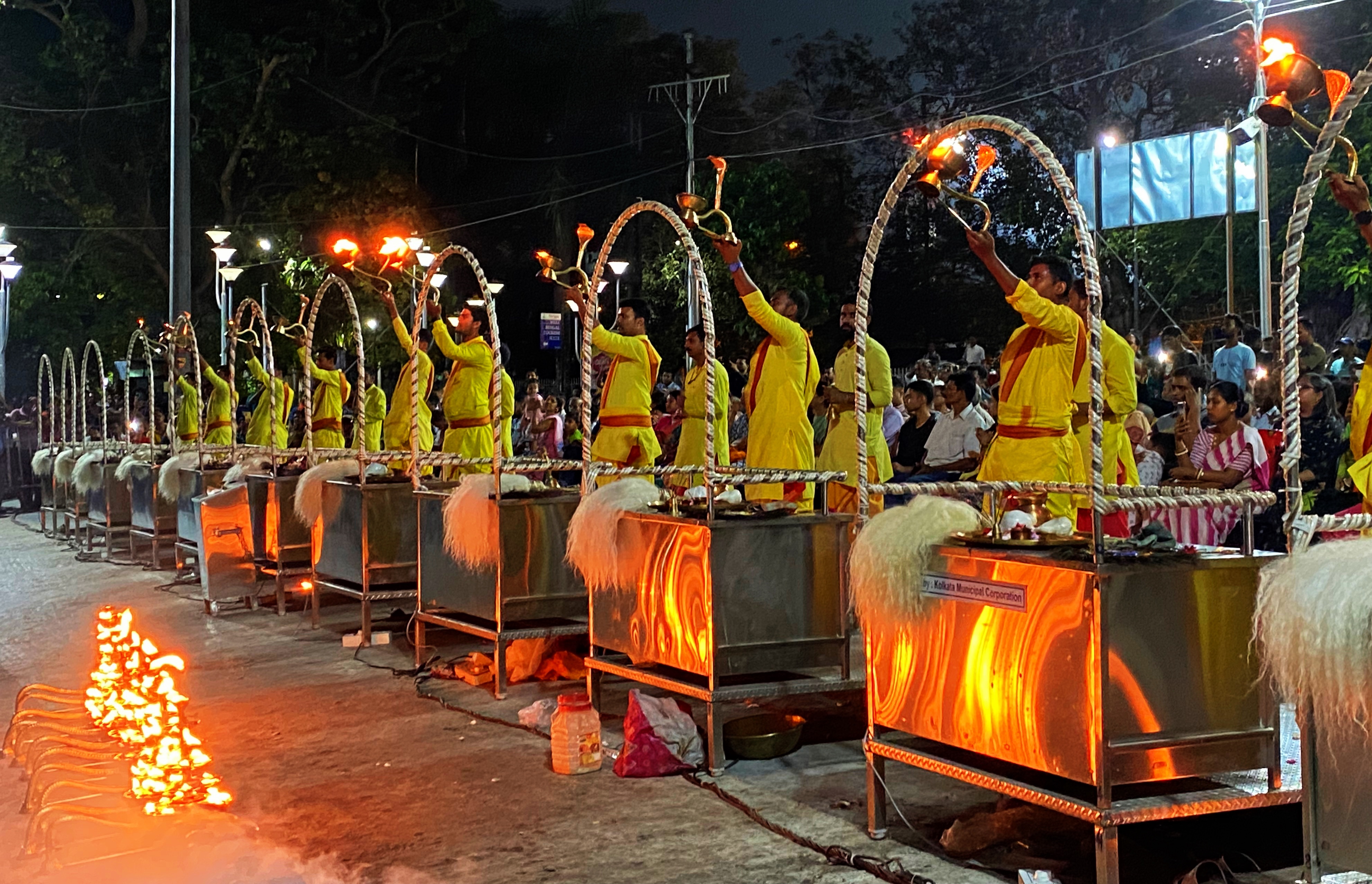 The Ganga Aarti is run on the shores of the Hooghly River, which is a distributor of the Ganges River. The ritual takes place on Babu Ghat, located near the Howrah Bridge.